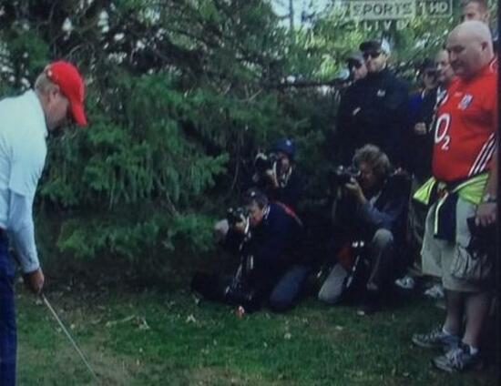 Well, Keegan Bradley is just not letting up. I thought he might have tuckered himself out with all his jingoistic jumping around earlier but he actually will not stop playing unbeatable golf. Much to my annoyance. Actually, you could say the same for all the US team this afternoon except for Tiger. There hasn’t been the customary swing in momentum. It’s solidly been USA all afternoon.