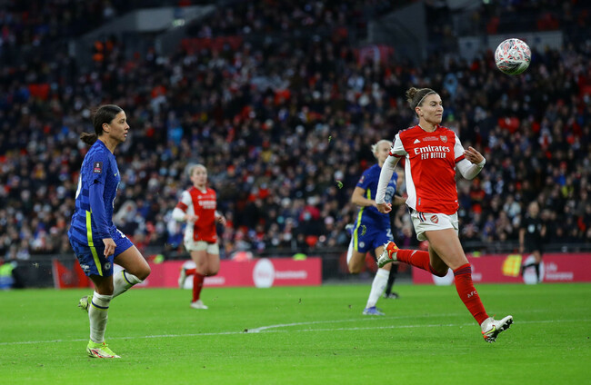 The chances continued to come for Chelsea. Kerr passed up one of them, rattling the crossbar on 36 minutes and Kirby struck a post as the pressure mounted on Arsenal.
