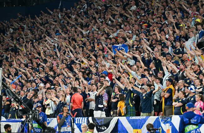 I’m bookending the game itself by hanging out with Scottish fans, as a colourful, diary-entry-friendly means of freshly torturing myself over Ireland’s absence. The Scots’ extraordinary capacity for drinking and good cheer, along with their songs of melancholic defiance and self-conscious acts of good will, is as close as Euro 2024 will get to the travelling Irish experience.