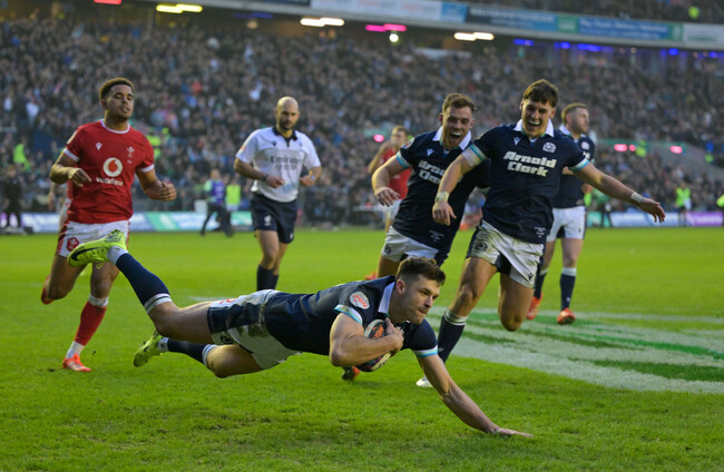 TOM JORDAN AND Blair Kinghorn both scored doubles in Scotland’s five-try 35-29 victory over Wales at Murrayfield as the visitors went down to a 16th consecutive Test defeat and a 10th straight loss in the Six Nations.