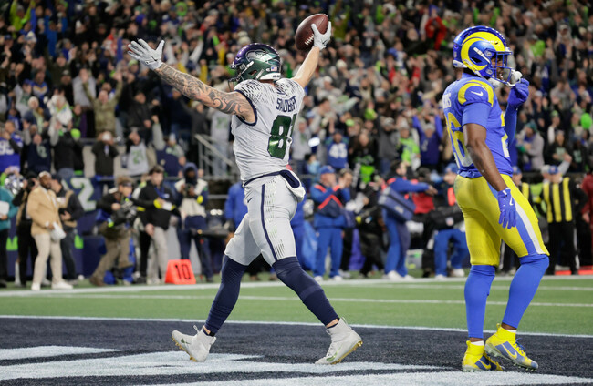 Darnold then found AJ Barner for another touchdown. Though the two-point attempt initially appeared incomplete, officials ruled Charbonnet had scored, after a backward pass deflected off a Rams helmet.