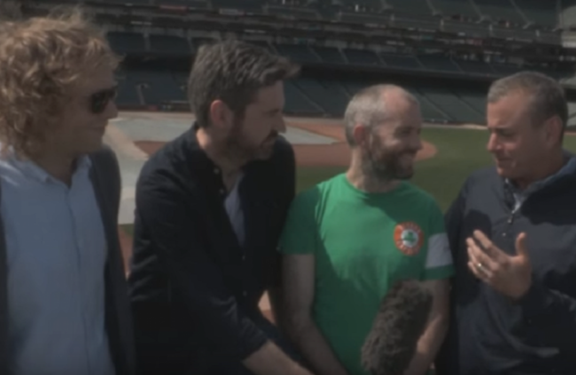 There’s also the episode where soccer correspondent Ken Early has just arrived in his base in Marseille for Euro 2016 and horrifies McDevitt and Murph (Ciarán Murphy) back in Ireland with a confession that he’s talking to them wearing nothing but his underwear. In the follow-up episode, Murph lingers on that image of Early, remarking “nothing between us but a thin stretch of polyester and cotton mix”.