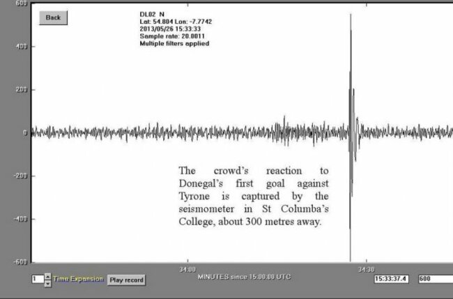 IT’S NOT OFTEN a goal causes a minor earthquake but this is what Colm McFadden’s opening strike for Donegal against Tyrone last Sunday looked like on a seismometer.