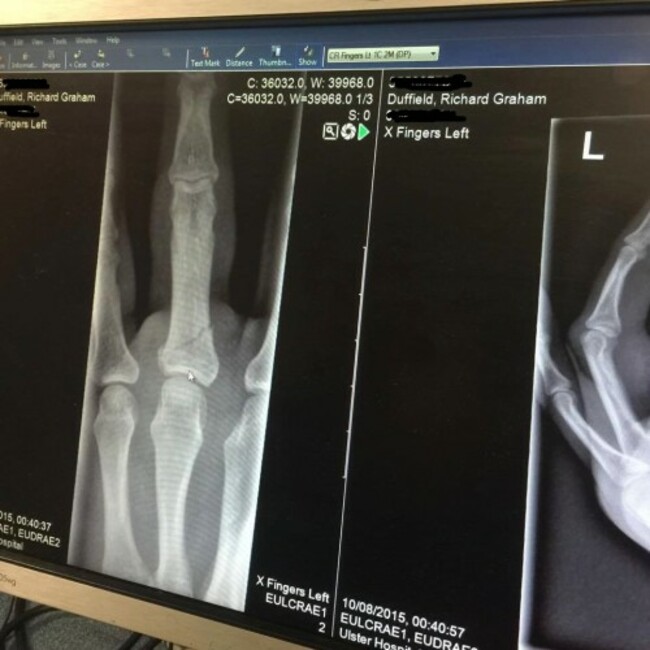 “I was making a tackle on Trinity running back Rob McDowell when one of our guys came in to help as the second man. I’m not 100% sure but I think I’ve ended up with my hand between the two helmets.