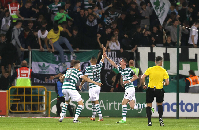 Lee Grace had powered a header into the top corner after 43 minutes – a week after defensive partner Roberto Lopes scored an equally impressive one against Dundalk – to get the ball rolling and if this victory couldn’t have got any sweeter for Rovers, their third was scored by the returning Neil Farrugia who had been absent since late June with a hamstring injury.