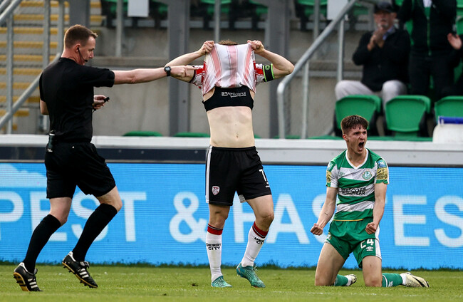 Rovers lost Sean Kavanagh to injury but were able to replace him with Jack Byrne, who saw a shot deflected wide after the razor-sharp Kenny had another shot blocked in the box. That came from thwarted Derry attempts to play out from the back, which drew a paroxysm of rage from Ruaidhri Higgins.