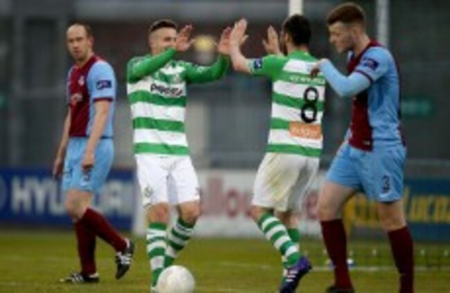 SHAMROCK ROVERS: Craig Hyland, Simon Madden, Conor Kenna, Maxime Blanchard, David O’Connor, Ryan Brennan, Pat Cregg (Stephen McPhail, 69), Keith Fahey, Gavin Brennan (Gary McCabe, 60), Michael Drennan, Brandon Miele.