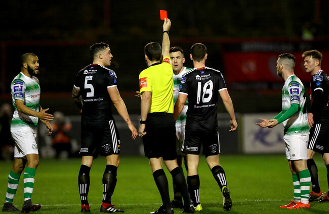 Rovers lost 1-0 to their rivals at Dalymount Park, having played from the 29th minute on with ten men when Greene was given a straight red for a robust challenge on Ward in front of the Bohemians’ bench.