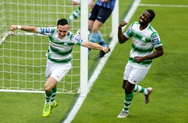 Aaron McEneff celebrates scoring his side's fifth goal. Laszlo Geczo/INPHO