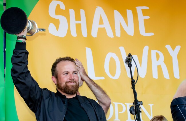 Lowry holds the Claret Jug aloft. Morgan Treacy/INPHO