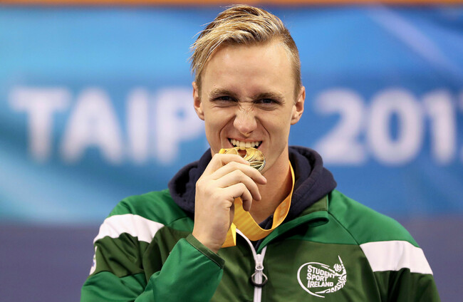 Now back at Penn State where he will complete his studies in Sports Management, the swimmer returns to his native US with a gold medal in his back pocket having earned Ireland’s first at this summer’s University Games in Taiwan.