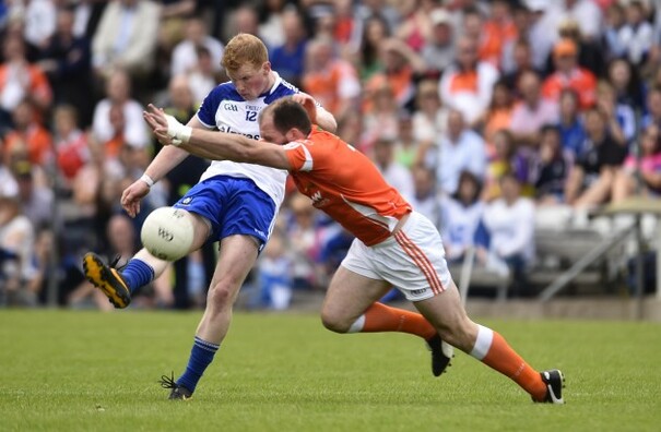 Paudie McKenna gets away his kick as Armagh's Ciaran McKeever challenges