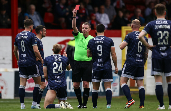 With centre back Paddy Barrett and left ful Tyreke Wilson sitting in the stands serving a suspension some of those changes were enforced, but on 35 minutes Shels were handed the initiative when Todd was sent off.