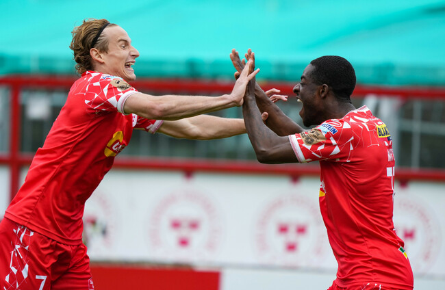Freddie Anderson’s back-post header almost crept in before Shels’ set-piece woes finally told on the stroke of half-time.