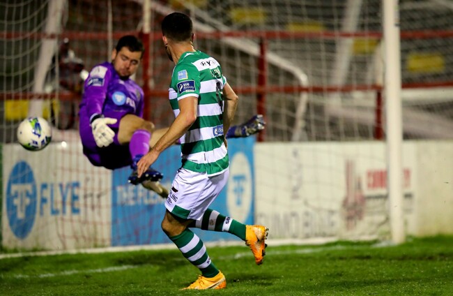 This seemed to have awoken the beast, and the visitors began to move the ball with more intent, and just minutes later fashioned a glorious chance to break the deadlock. Both Aaron Greene and Aaron McEneff had strikes from inside the area bravely blocked in quick succession as Shels bodies were put bravely on the line.