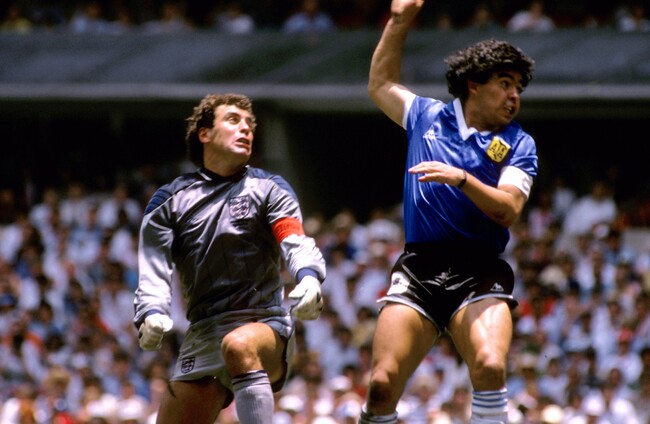 The game will be forever remembered for two moments: when Maradona rose above Shilton to punch the ball into the net and then minutes later when he dribbled past half the England team before slotting the ball beyond Shilton.