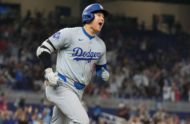 The Japanese superstar reached the landmark with his second home run of the night in the seventh inning of the Los Angeles Dodgers’ 20-4 rout of the Miami Marlins.