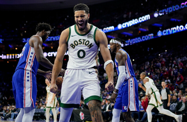 Jayson Tatum led the Boston Celtics scoring with 29 points while Derrick White weighed in with 27 to give Boston a 117-107 victory on the road in Philadelphia.