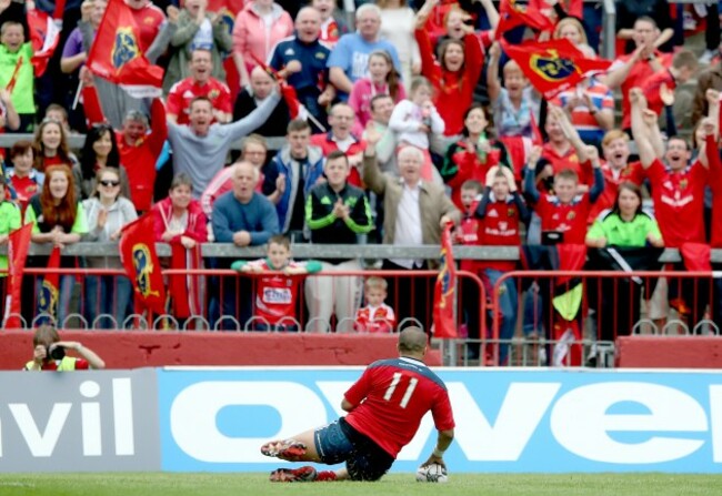 The winger finished off a brilliant attack to send Munster into an 11-3 lead at half-time in the Pro12 semi.