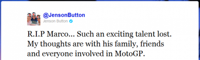 Among those to publicly express their condolences was McClaren F1 driver Jenson Button.