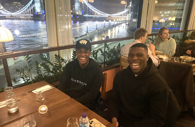 Aidomo Emakhu (left) with Sinclair Armstrong outside London Bridge Station.