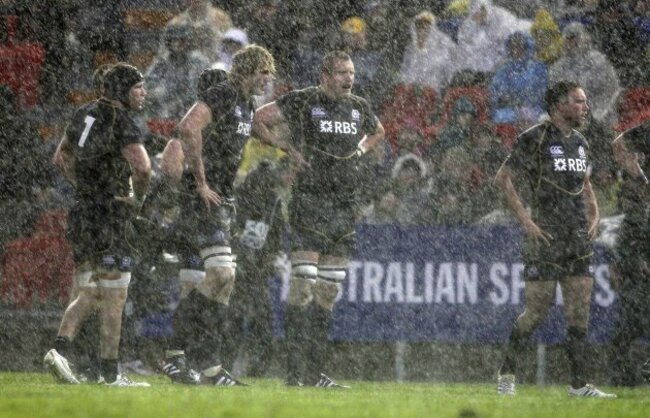 Scottish players catch their breath during a deluge on their way to beating Australia. Rob Griffith/AP/Press Association Images