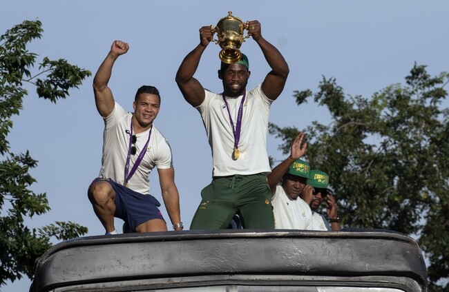 Celebrations of the 32-12 final victory over England in Japan last weekend will conclude Monday when the team drive through the streets of Cape Town, a rugby hotbed.