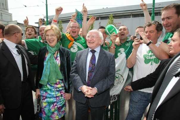 Slideshow: Michael D. Higgins travels to Poland with Irish fans