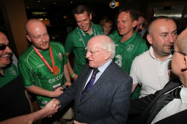 It really was President Michael D. Higgins though as he joined hundreds of other travellers on an early morning flight to Poland to cheer on the boys in green.