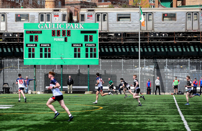 In front of a 4,000 strong crowd, New York started brightly with Peter Fox landing a long-range point. Former Galway forward Adrian Varley was a stand-out player for the home side right until he was shown a black card at the end and kicked a superb point after catching a kick-out early on.