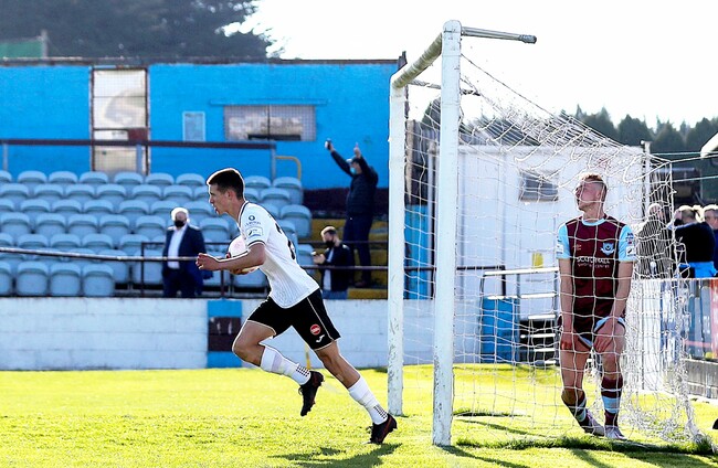 End-to-end stuff in the second half saw Drogheda moments later with a huge chance to take the lead. Another fine Murray set piece landed right on the head of the towering O’Reilly, whose effort came crashing back off the butt of the post.
