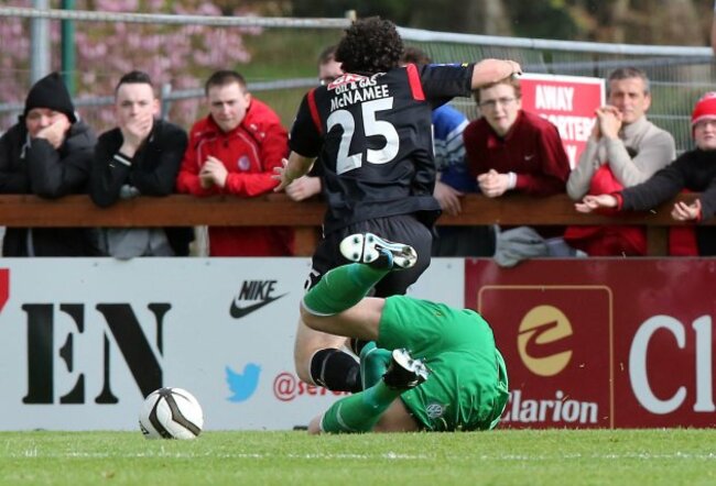 Rory Patterson tried to spark the reigning FAI Cup champions but their afternoon’s work was made extremely difficult when Shane McEleney was sent off for a foul in the box that also led to a penalty. With McEleney trudging off, Ross Gaynor placed the ball on the spot and sent Ger Doherty the wrong way.