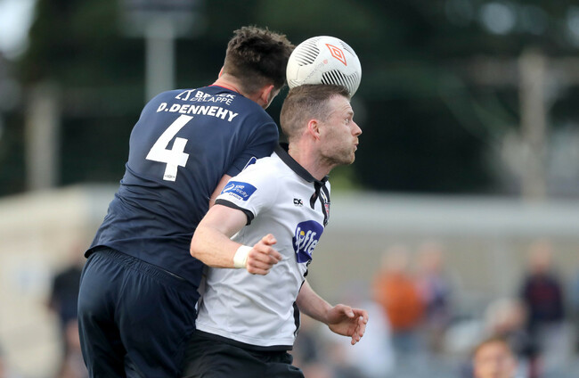 After applying a bit of pressure on the Bit O’Red defence, Duggan fought off McCabe to put an inch-perfect cross on to the head of Dennehy, who nodded past Schlingermann to give his side the lead.