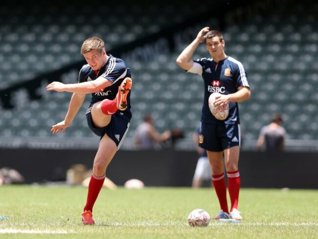 Former Leinster man Jonathan Sexton got in some last-minute kicking practice at the Hong Kong Stadium earlier today with Owen Farrell.