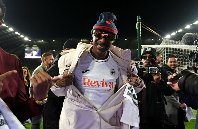 The American rapper, who is a minority owner of the Championship club alongside American television host Martha Stewart and Croatia international Luka Modric, made his first appearance at the Swansea.com Stadium for Tuesday’s clash with Preston.