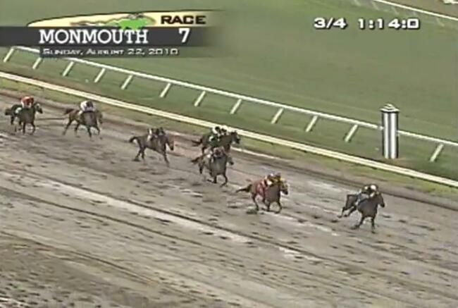 In this race at Monmouth Park in New Jersey at the weekend, the final straight saw the 7th become a (literally) two-horse race between two racers named – believe it or not – ‘Mywifenosevrything’ and ‘Thewifedoesntknow’.