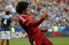 Marouane Fellaini scored twice as Belgium beat France in a 7-goal thriller