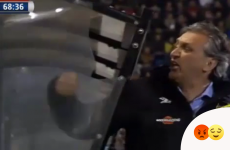 Dutch manager completely loses the rag and smashes a hole in the dug-out with his fist