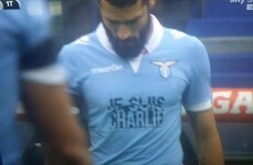 Lazio players wear 'Je Suis Charlie' on their shirts in the Rome derby