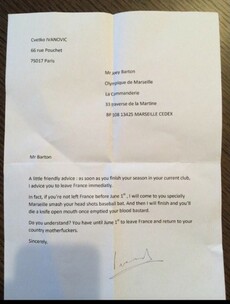 Joey Barton reveals death threat letter from his season in Marseille