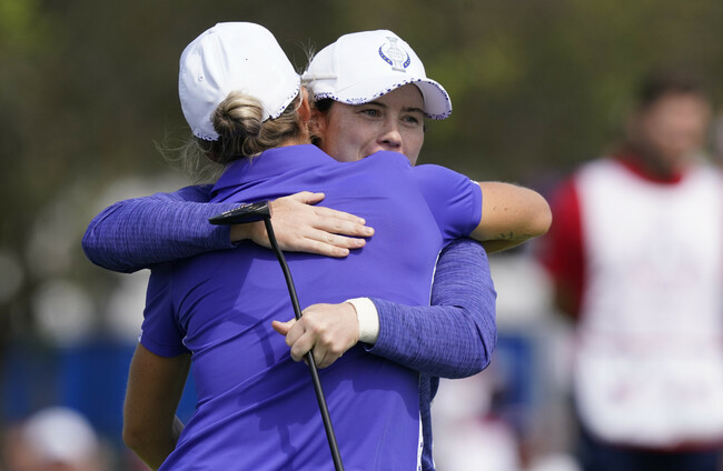 Europe had earlier drawn first blood as AIG Women’s Open champion Anna Nordqvist and Finnish rookie Matilda Castren combined to defeat Danielle Kang and Austin Ernst on the 18th.