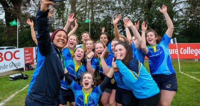 Spence takes a selfie with her DCU team at a recent 7s tournament. INPHO/Gary Carr