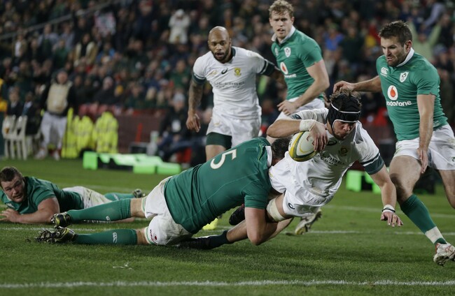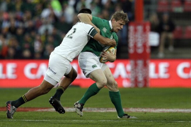 There was early signs of Irish nerves as Iain Henderson dropped a flat pass from Jared Payne handing the Boks an early scrum. The Irish pack splintered after an initial good hit as referee Angus Gardner awarded the first penalty of the match. The effect of the high altitude was immediately apparent as Jantjies fired over the 50-metre effort with plenty to spare to give his side an early 3-0 lead.