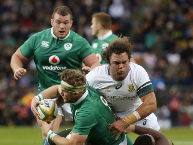 Ireland continued to absorb waves of Springbok attacks as Toner and Rory Best effected a trademark ch0ke tackle on Louw with another powerful scrum following to relieve the pressure.
