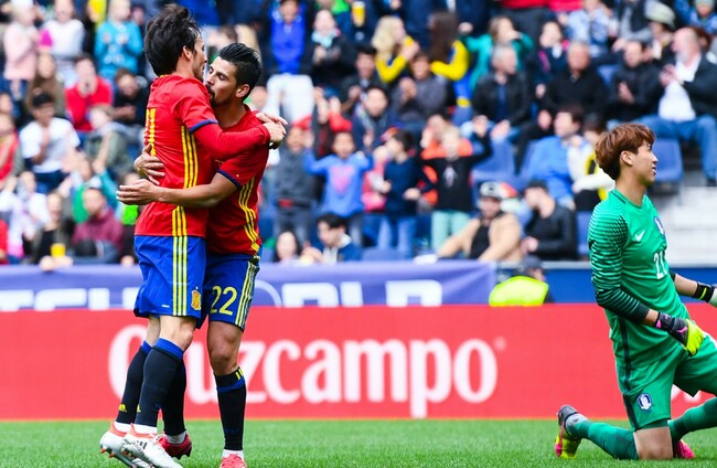After scoring twice in the 3-1 win over Bosnia-Herzegovina last time out, Nolito delivered another two-goal show which could convince Del Bosque that he deserves a regular role and his presence on the shoulder of the defence was an early menace, but Jang Hyun-soo was alert to the danger.
