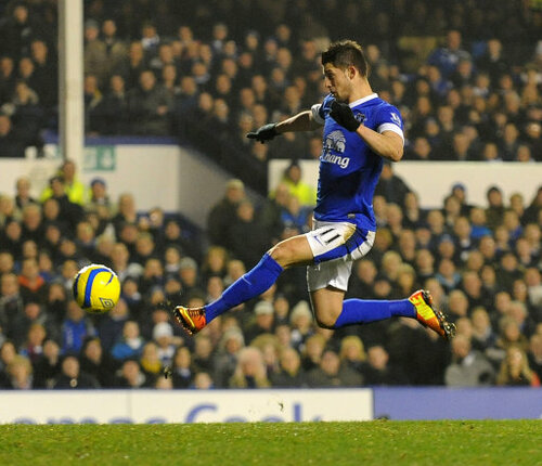 Everton's Kevin Mirallas scores the opening goal of the game against Oldham Athletic