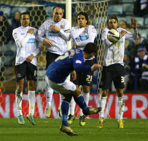 Ben Marshall's free kick tries to make it's way over the Blackburn wall