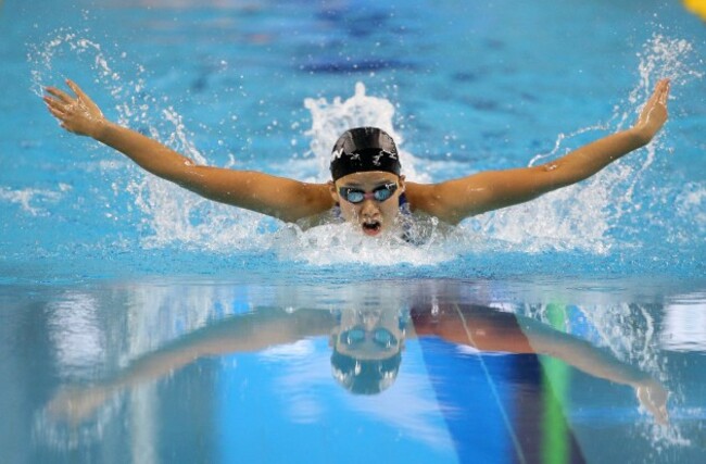Japan’s Kanako Watanabe swims in the women’s 200-meter individual medley final at the Asian Games.