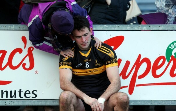 Ambrose O'Donovan is consoled by a supporter at the end of the game
