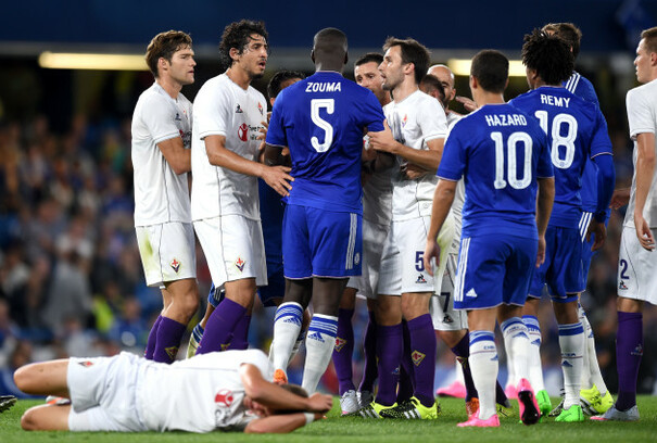 Fiorentina's Ricardo Bagadur lies on the floor at Stamford Bridge